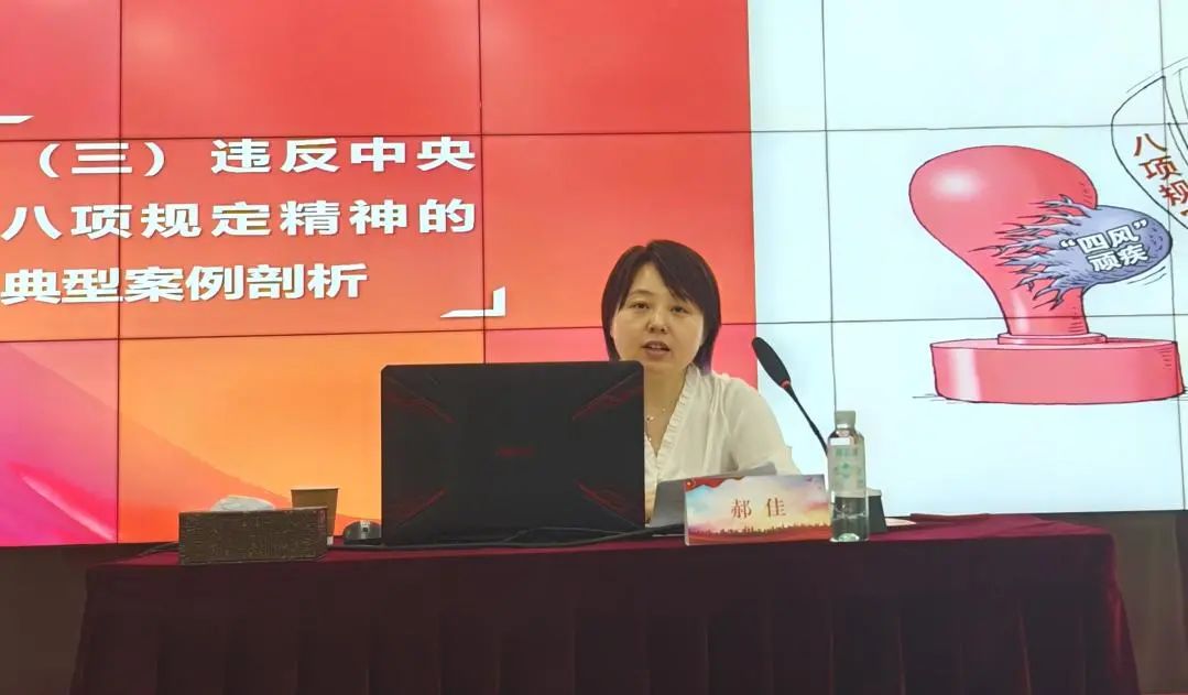 課程圍繞中央八項規定精神的內涵與重大意義、違反中央八項規定精神的主要表現形式、構建常態長效的中央八項規定貫徹落實機制等方面展開。郝佳指出,中央八項規定是新時代全面從嚴治黨的“第一刀”,是密切黨群關系的“連心橋”,更是推動高質量發展的“硬保障”。她強調,全體干部要深刻領會八項規定“抓常抓細抓長”的政治要求,把落實精神轉化為守紀律、講規矩的思想自覺與行動自覺。