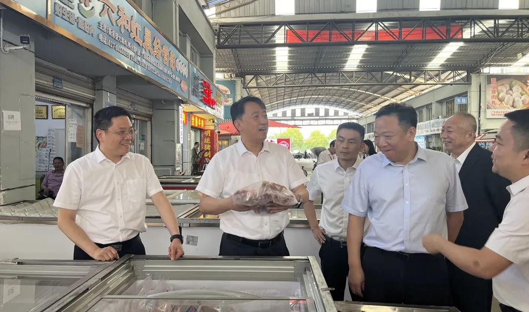 楊良鋒一行實(shí)地調(diào)研增益冷鏈(武漢)交易中心市場(chǎng),詳細(xì)了解市場(chǎng)運(yùn)營(yíng)管理模式、冷鏈倉(cāng)儲(chǔ)設(shè)施配置及生鮮產(chǎn)品流通流程,聽(tīng)取華沛農(nóng)業(yè)發(fā)展集團(tuán)董事長(zhǎng)彭浩關(guān)于交易中心數(shù)字化建設(shè)及未來(lái)規(guī)劃情況介紹。