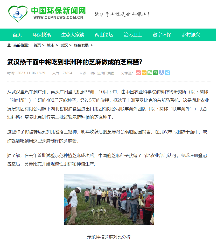 中國環保新聞網:武漢熱干面中將吃到非洲種的芝麻做成的芝麻醬?