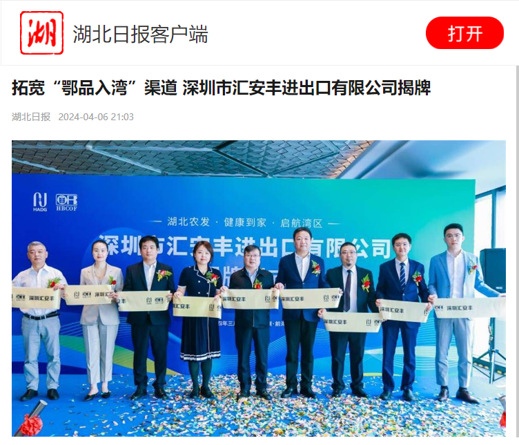 湖北日報:拓寬“鄂品入灣”渠道 深圳市匯安豐進出口有限公司揭牌