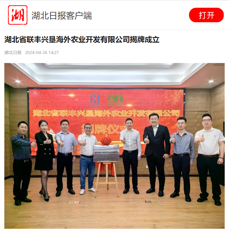 湖北日報:湖北省聯豐興墾海外農業開發有限公司揭牌成立