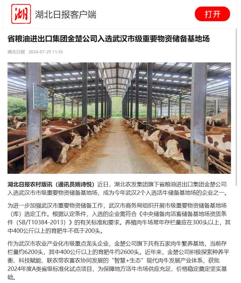 湖北日?qǐng)?bào):省糧油進(jìn)出口集團(tuán)金楚公司入選武漢市級(jí)重要物資儲(chǔ)備基地場