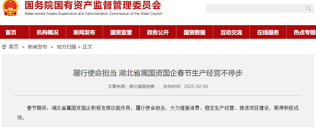 國務院國資委:履行使命擔當 湖北省屬國資國企春節生產經營不停步