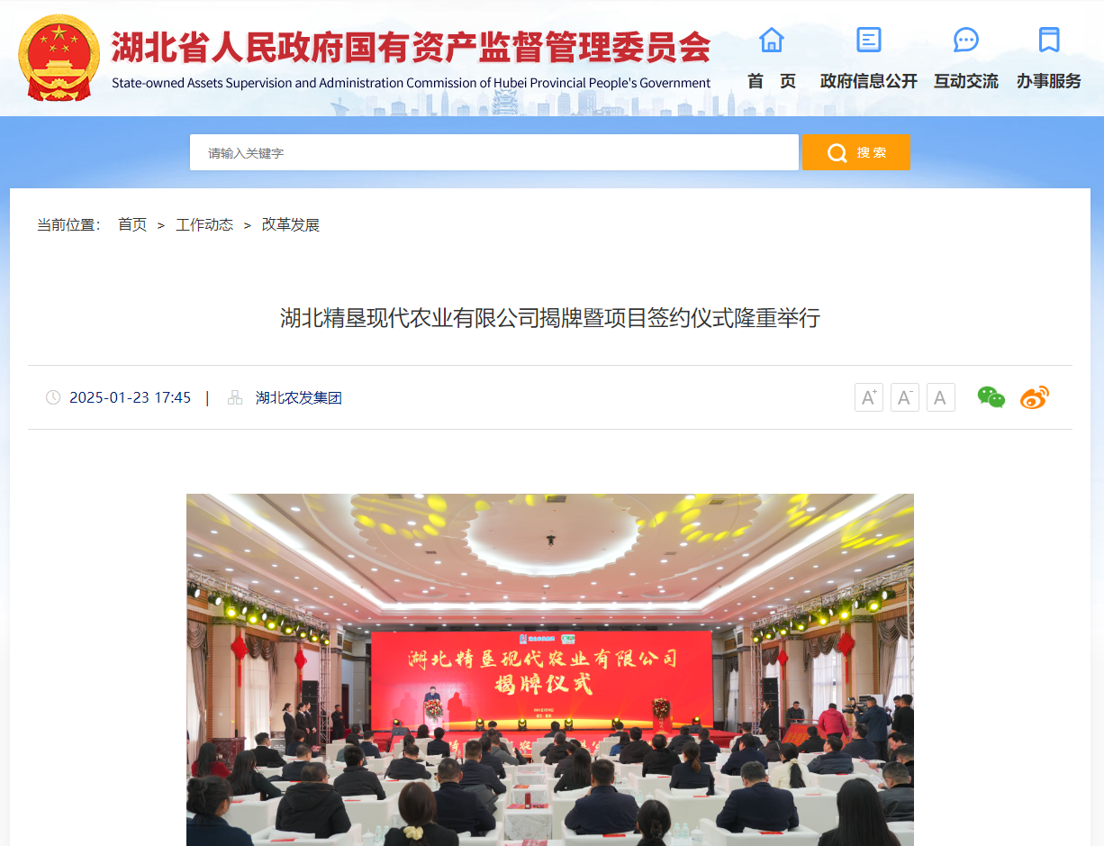 湖北省國(guó)資委:湖北精墾現(xiàn)代農(nóng)業(yè)有限公司揭牌暨項(xiàng)目簽約儀式隆重舉行
